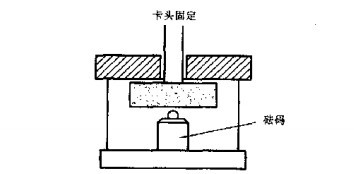 将磨头放入盛有100°沸水的容器内,浸3min后取出,按图 所示挂上3k g的祛码,经过2 min后,检查芯轴的粘结情况,以无松动现象为合格。